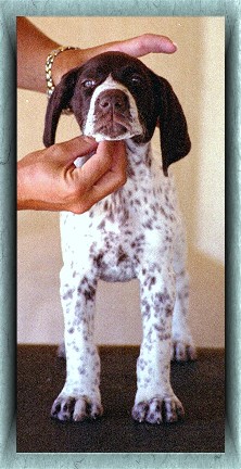"VJK-MYST KMK Love Me Do" @ 7 Weeks - "Mia" is owned by Kitty Keiner of "KMK Shorthairs" in Fulda, MN.